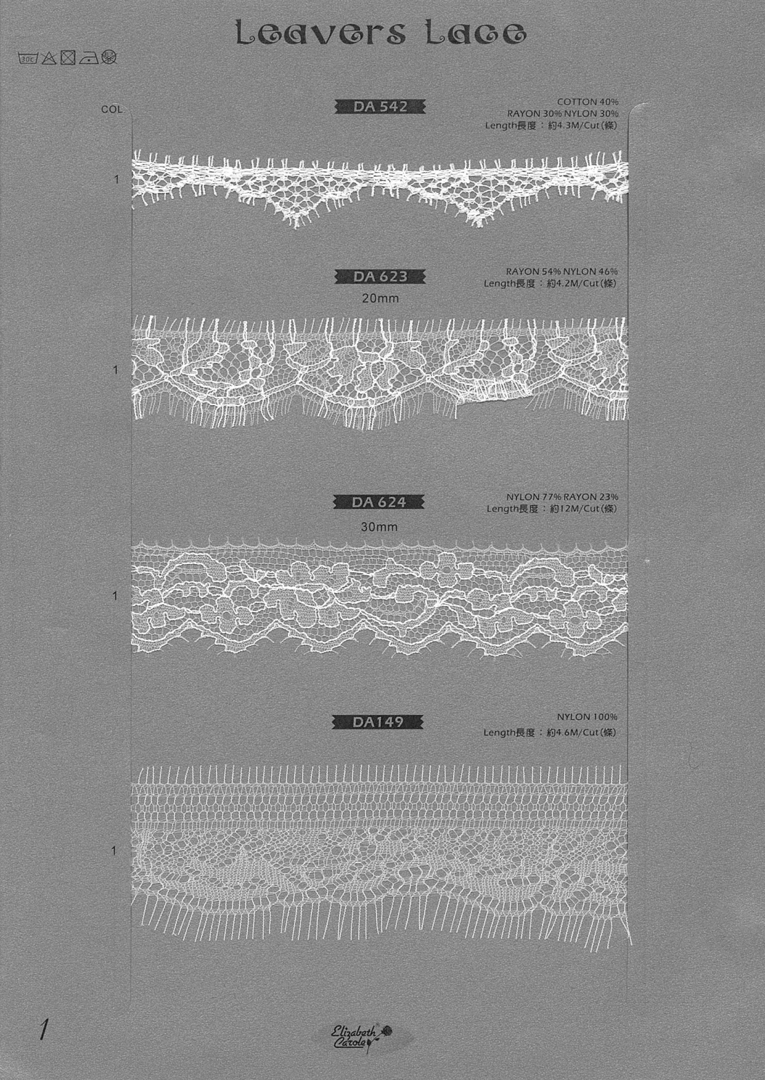 黎芭蕾絲(Leavers lace),源於可以織出這種美麗花邊的織布機,這種古老織布機19 世紀上半由英國所生產,之後被引進到法國的加萊,加萊也是世界最大的黎巴蕾絲生產地。