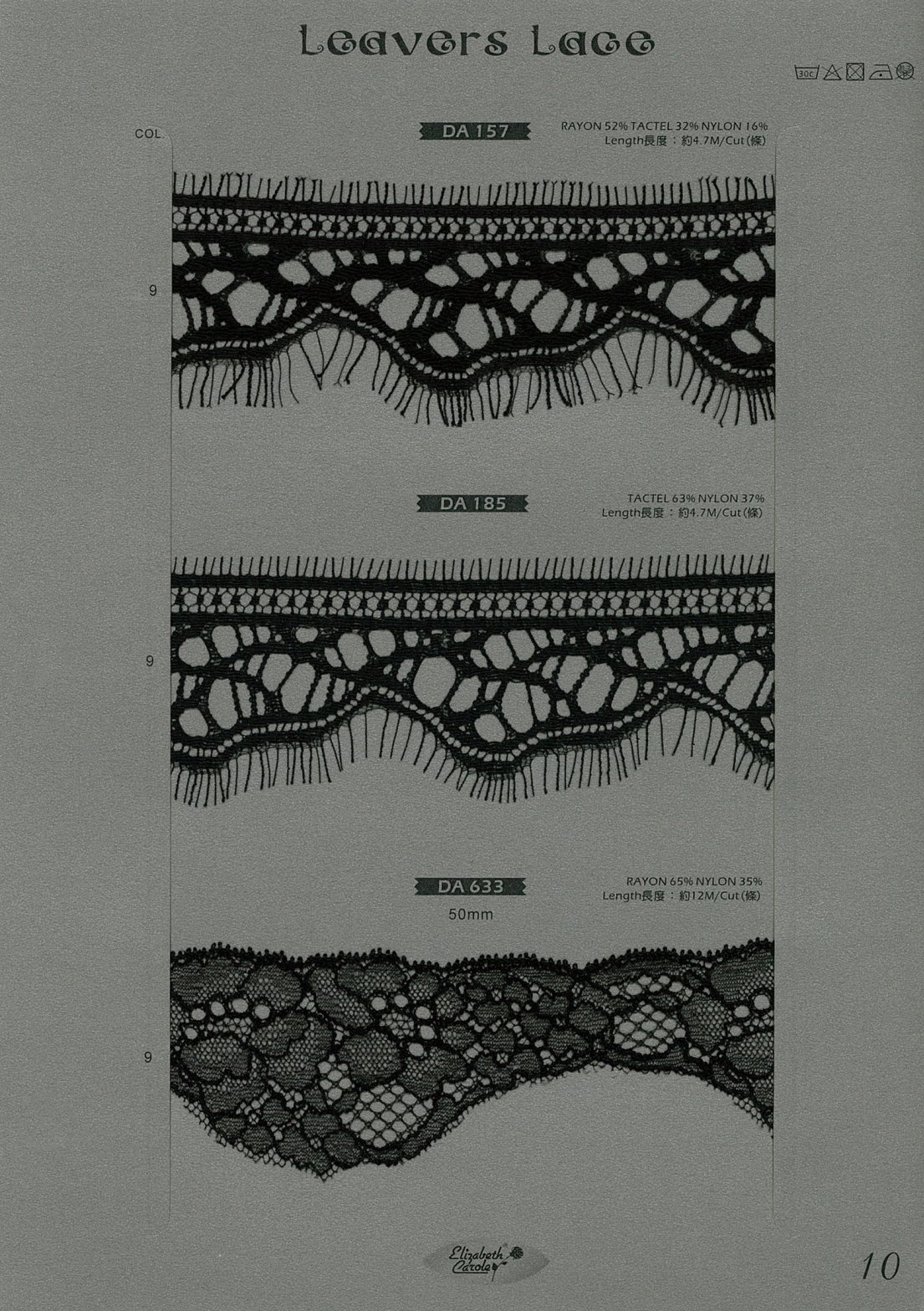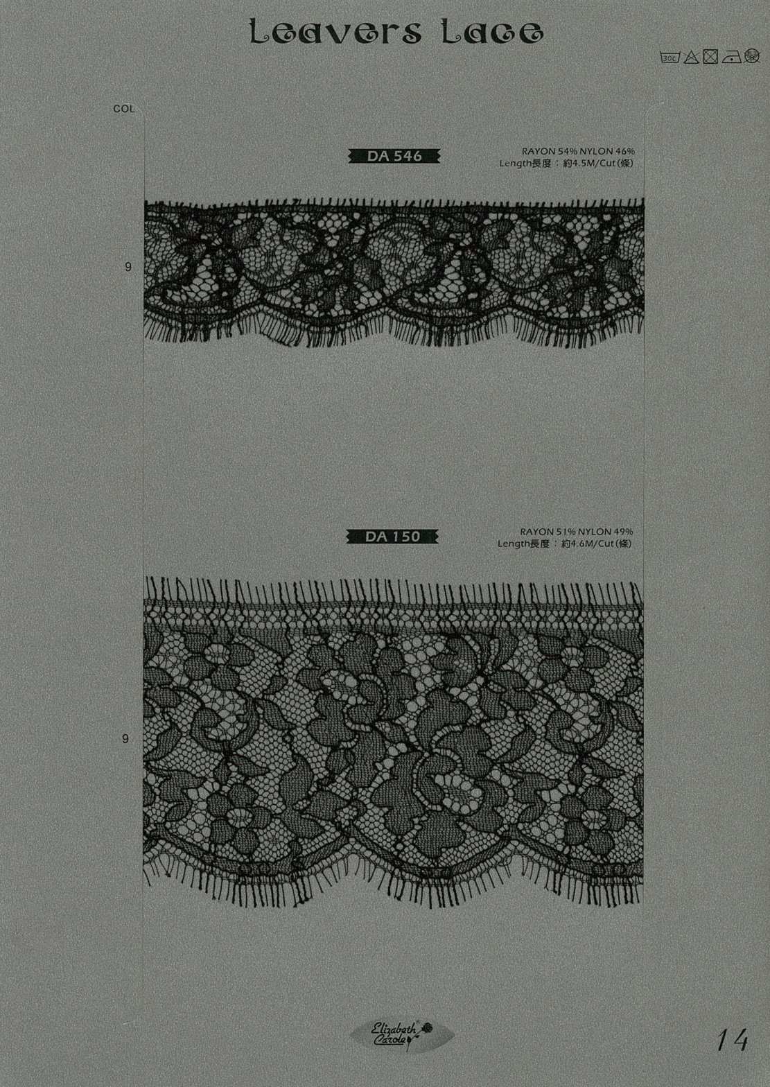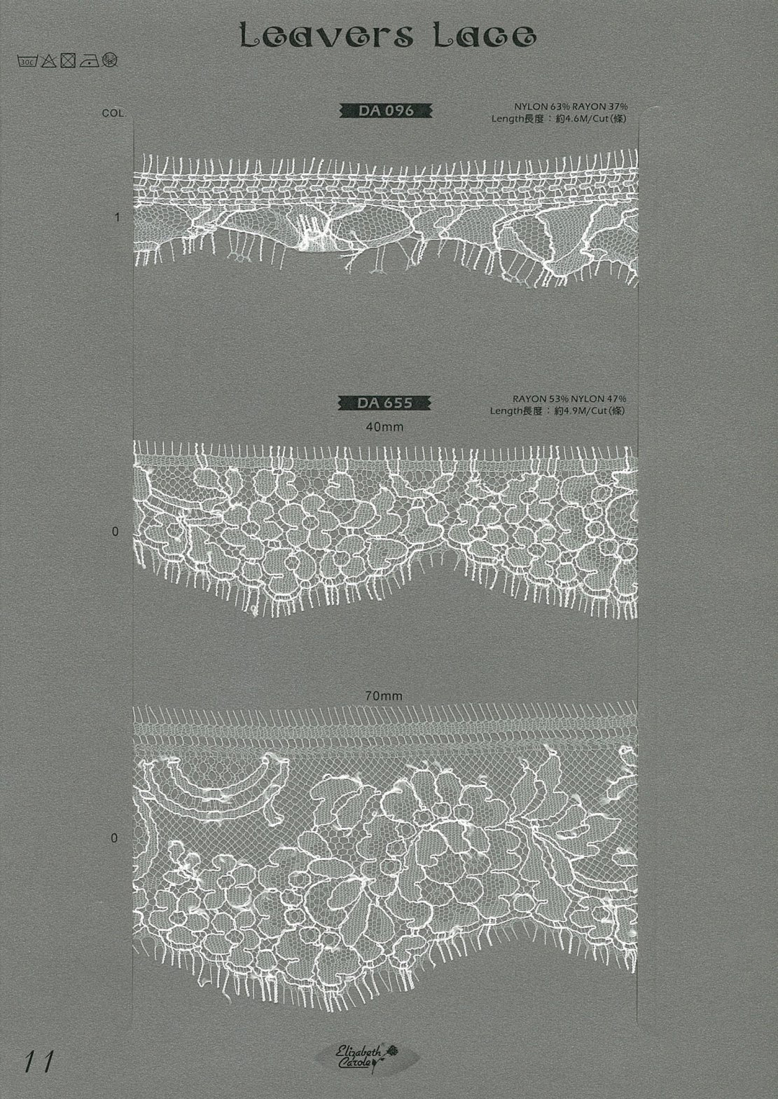 細緻繁複的編織方式成就黎芭蕾絲精緻細密的花紋,而質感柔順不刮膚非常適合適用在貼近肌膚的製作。