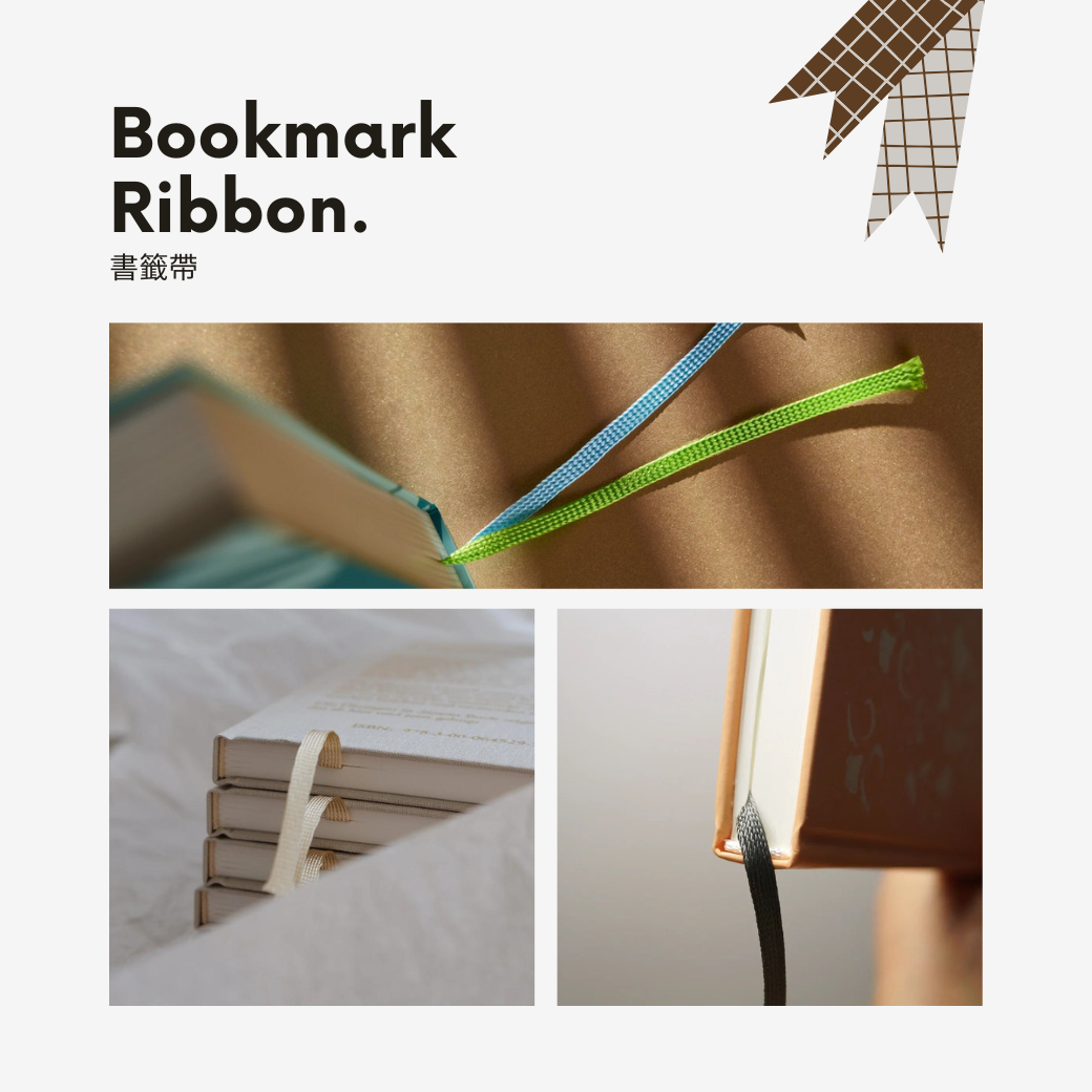 常見於精裝書的設計細節,搭配書封色彩的織帶,為整本書增添優雅與高級感。